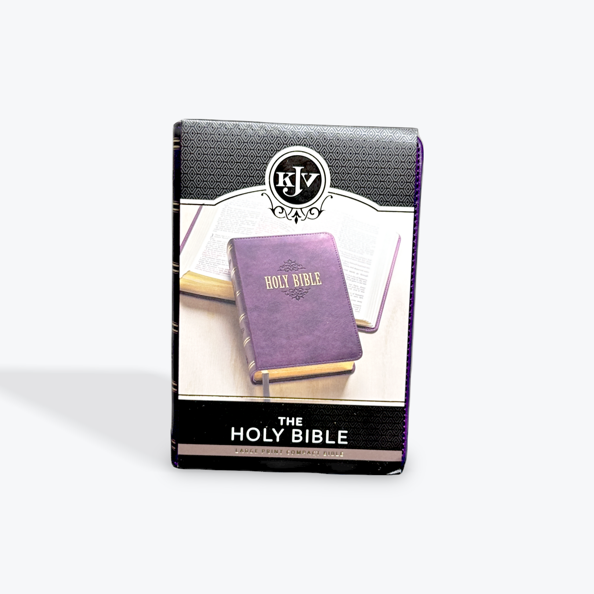 The Purple Faux Leather Large Print Compact King James Version Bible combines the size of a small Bible with the ease of a large print. Although the Bible is markedly smaller than a standard Bible, its 10-point text is slightly larger and is considered a large print for a compact-size Bible.