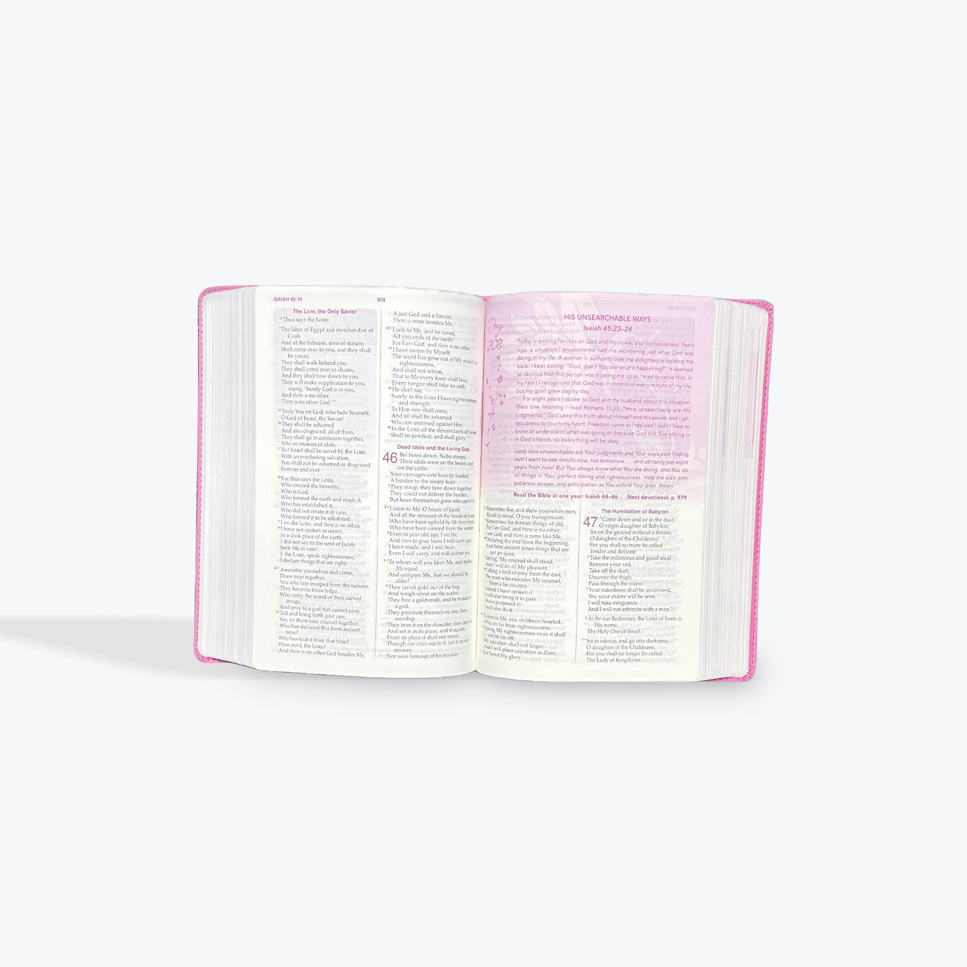 You will be informed, instructed, and encouraged through the daily devotionals and the comprehensive study features that include: