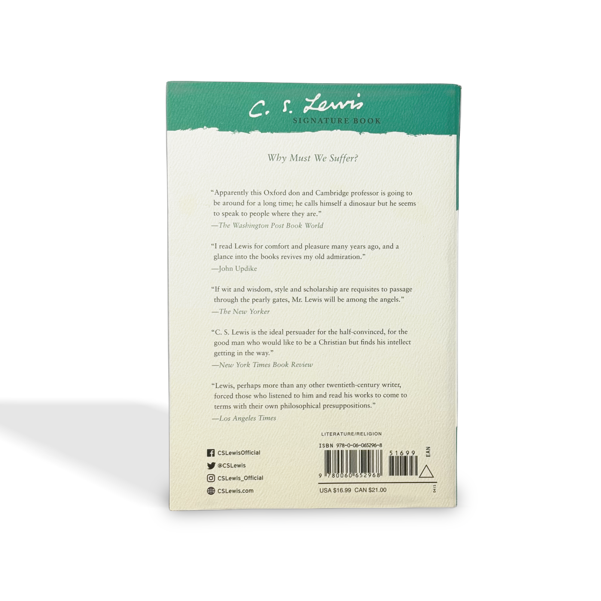 “If God is good and all-powerful, why does he allow his creatures to suffer pain?” And what about the suffering of animals, who neither deserve pain nor can be improved by it? The greatest Christian thinker of our time sets out to disentangle these knotty issues. With his signature wealth of compassion and insight, C.S. Lewis offers answers to these crucial questions and shares his hope and wisdom to help heal a world hungering for a true understanding of human nature.