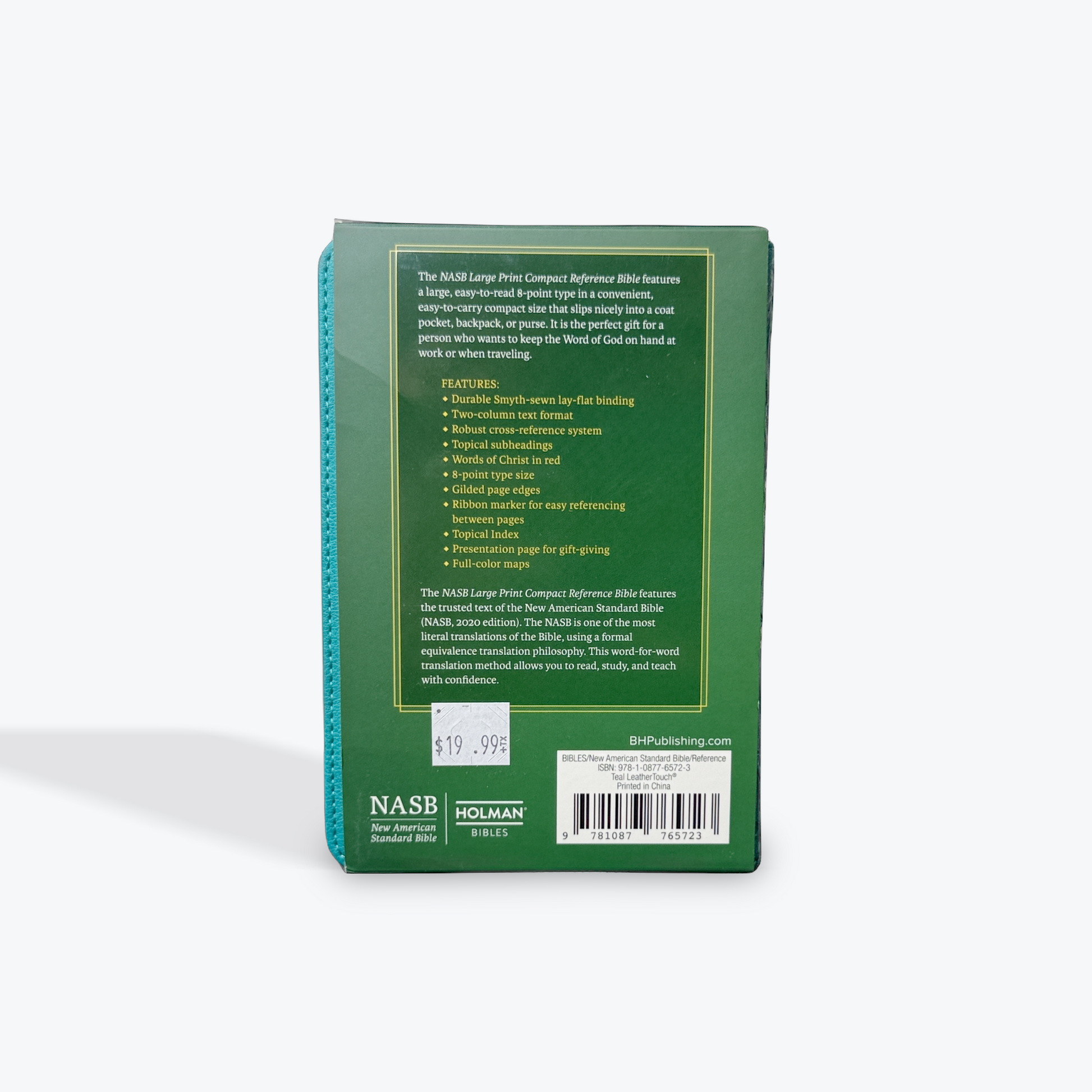 The NASB Large Print Compact Reference Bible features large, easy-to-read 8-point type in a convenient, easy-to-carry compact size that slips nicely into a coat pocket, backpack, or purse. It is the perfect gift for anyone who wants to keep the Word of God on hand at work or when traveling.