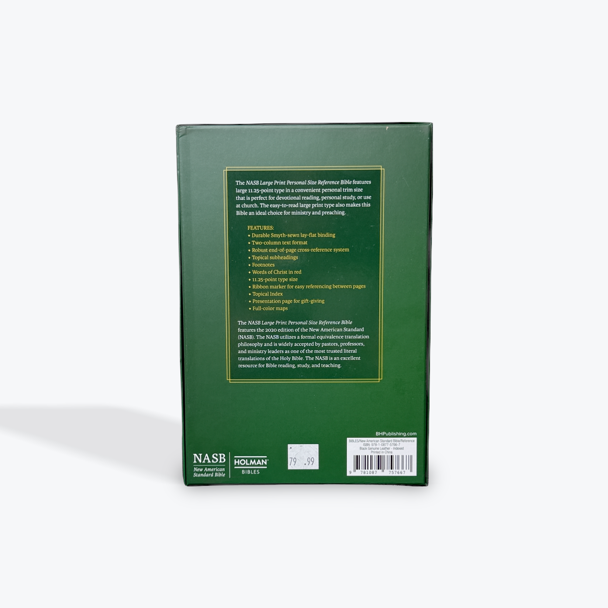 The NASB Large Print Personal Size Reference Bible features the trusted text of the New American Standard Bible (NASB, 2020 Edition). The NASB is one of the most literal translations of the Bible, using a formal equivalence translation philosophy. This word-for-word translation method allows you to read, study, and teach with confidence.