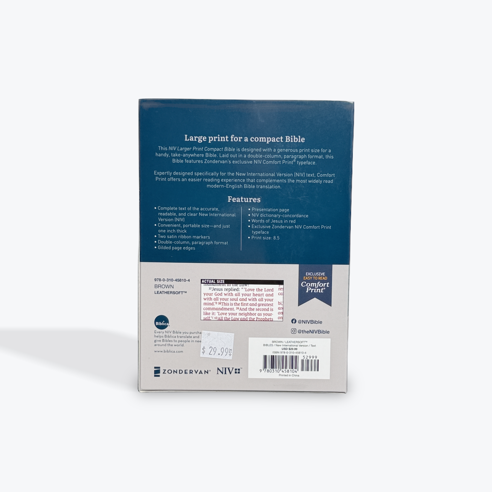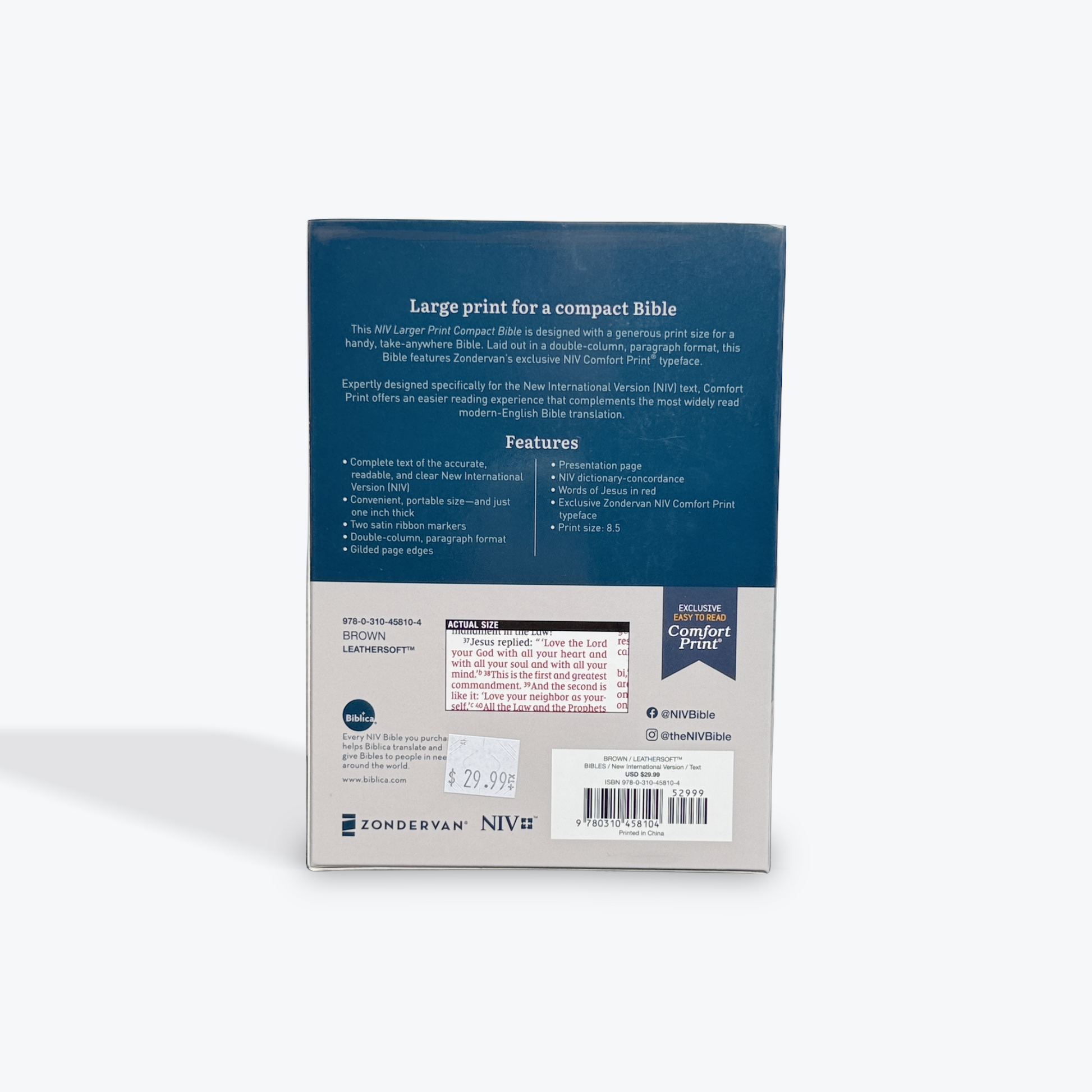 NIV Larger Print Compact Bible, Red Letter Edition, Comfort Print, Brown Leathersoft