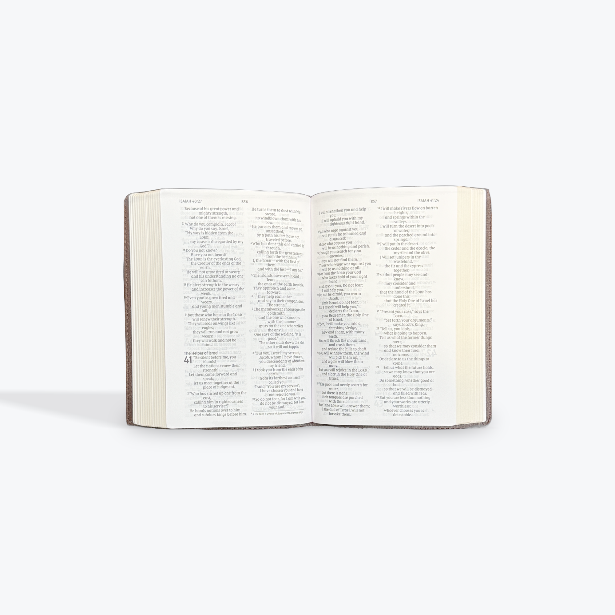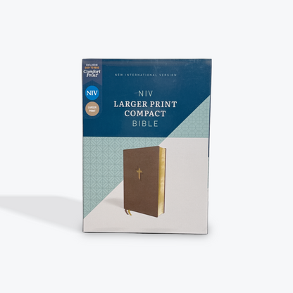 The NIV Larger Print Compact Bible boasts a generous print size for a handy, take-anywhere Bible. Laid out in a double-column, paragraph format, this Bible features Zondervan’s exclusive NIV Comfort Print® typeface.