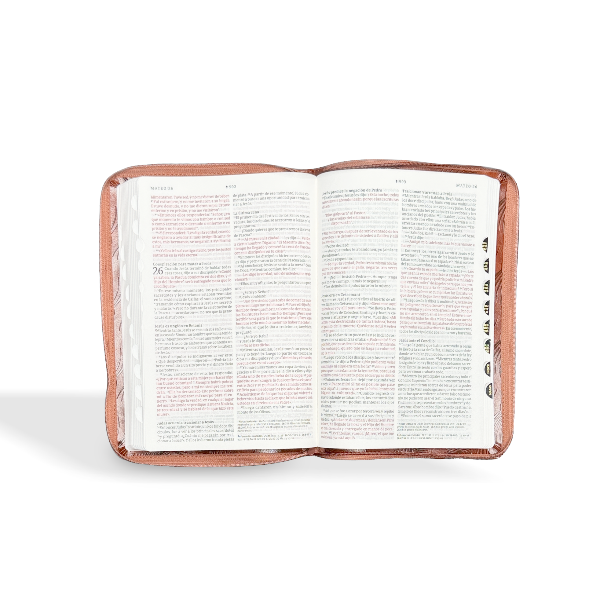 NTV Biblia ultrafina, letra grande de zíper con Filament, LeatherLike, Indexed, Brown Palm, Red Letter