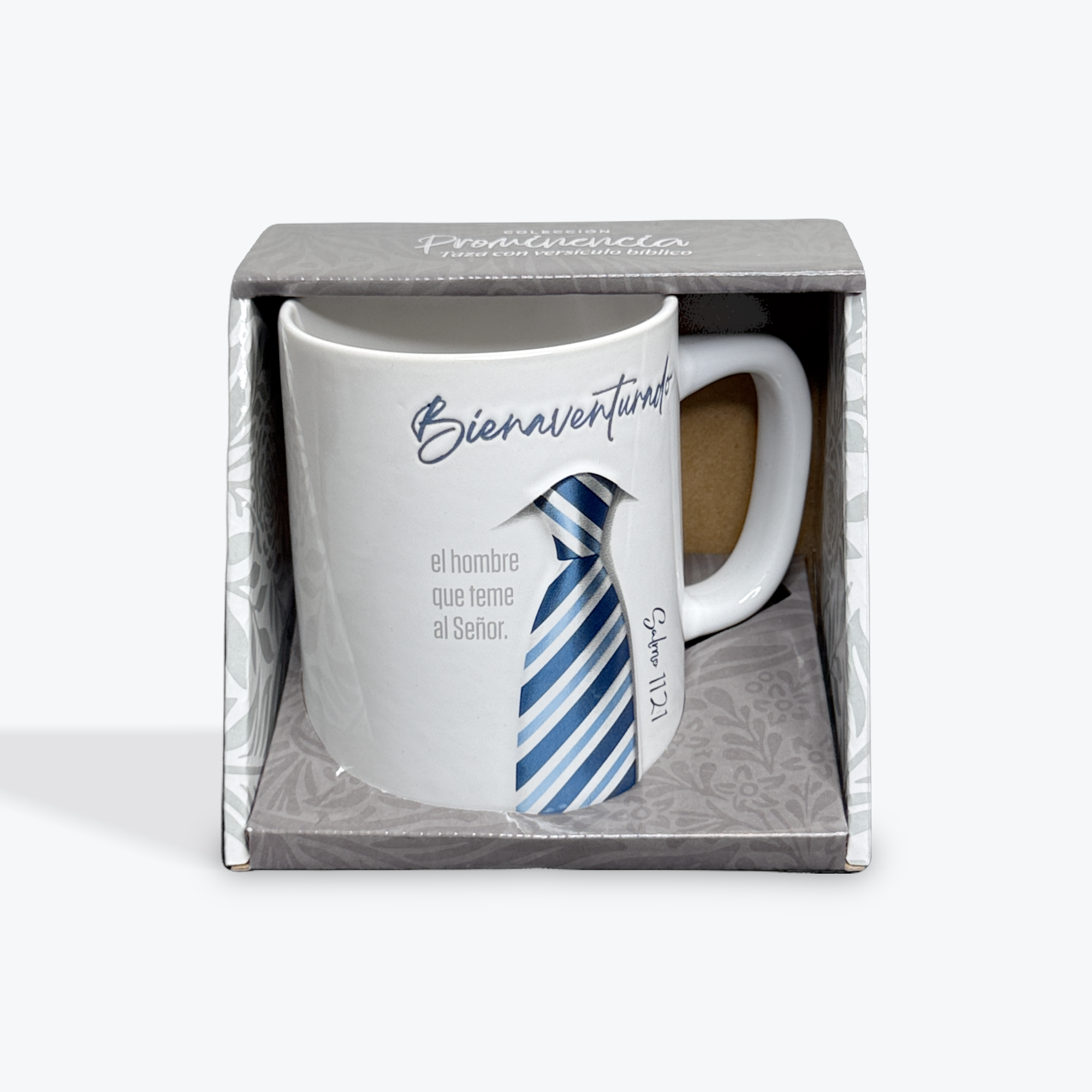Taza de Ceramica Coleccion Prominencia Modelo: Bienaventurado, Corbata 23oz